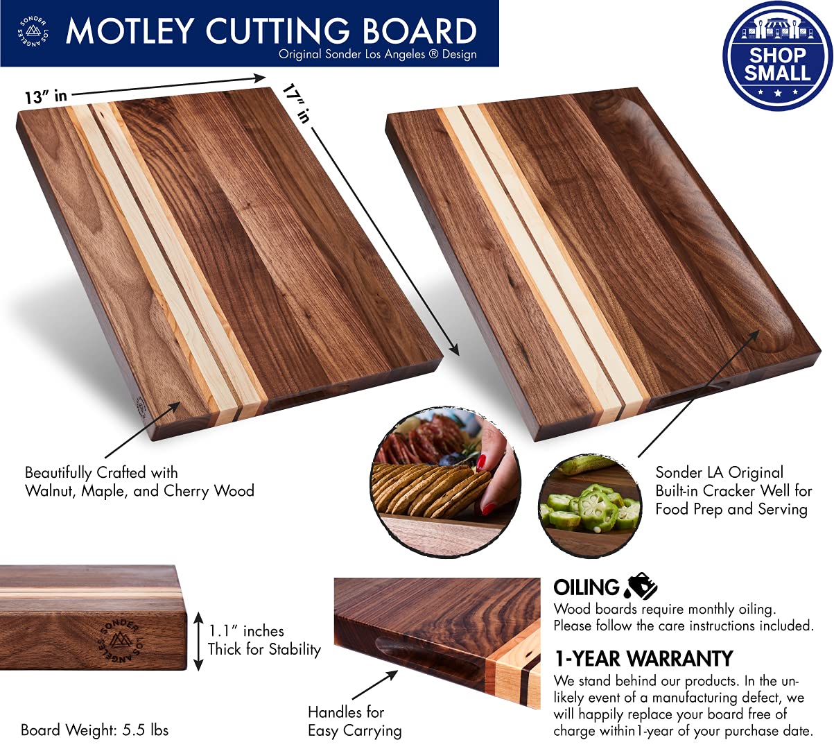 Amazon Com Sonder Los Angeles Large Walnut Cherry Maple Wood Cutting Board Sorting Compartment Reversible 17x13x1 1 In Gift Box Included Home Kitchen